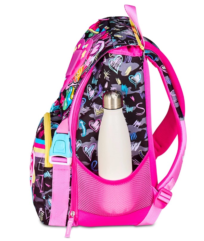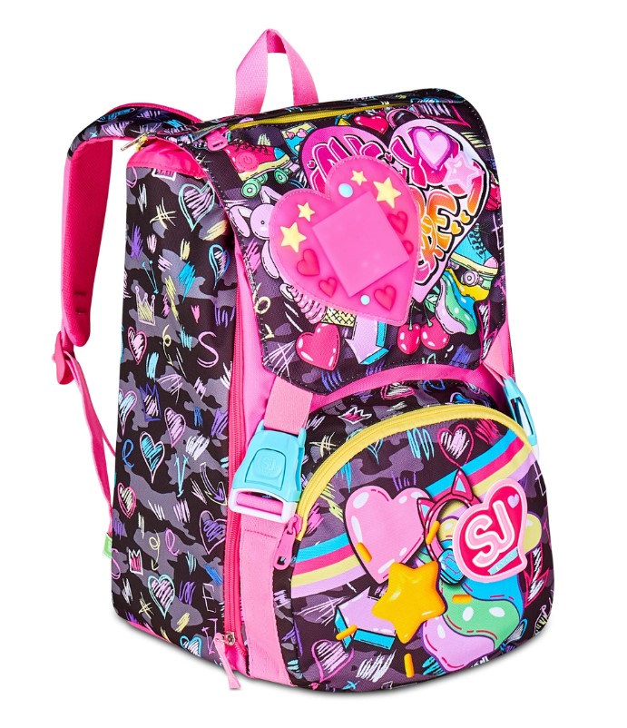 Ciao! Sono GAME-LED GIRL, lo zaino estensibile SJ GANG per andare a scuola e giocare! Divertiti ad accendere il LED posizionato sulla pattina staccabile tramite il pulsante on/off, e ricaricalo attraverso l’usb quando vuoi. Ho un doppio scomparto spazioso, di cui puoi aumentare facilmente la capienza tramite le zip laterali per poter accogliere e distribuire in modo ottimale libri, quaderni e tutto ciò che ti serve per la tua giornata, potendo sfruttare anche la tasca frontale. Inoltre, sono davvero comodo da indossare sulle spalle, grazie a schienale e spallacci confortevoli. In più, il fondo integrato mantiene la mia struttura inalterata, garantendo la stabilità del contenuto anche a pieno carico.